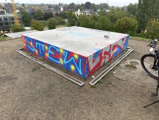 Oben auf der laga Pyramide sind fünf Lampen mutwillig zerstört worden. Zudem gibt es überall Graffiti.