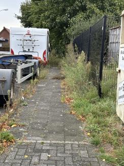 Gehweg, nur eingeschränkt nutzbar, zugewachsen. Auch schon mal mehrfach gemeldet, dass es noch nichts passiert.