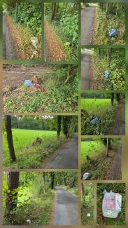 Den gesamten Glanemanns Weg hoch bis zur Schwarzenbergstr wurden wieder Müllsäcke am Straßenrand links und rechts abgelegt. Teilweise große blaue Säcke, teilweise in transparenten Plastiktüten. Scheinbar sogar mit frischen Obst?!?