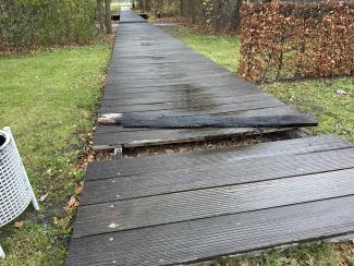 Aktuell liegt das Brett komplett daneben, die stellt eine erhöhte Unfallgefahr dar