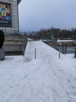 Ich habe heute versucht, das Rocknpopmuseum zu erreichen, und es ist mir sehr schwer gefallen, da sämtliche Wege dorthin vereist und glatt waren.