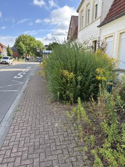 Vielen Dank für den Hinweis. Es handelt sich hier um eine Privatfläche, bei der die Anlieger und Anliegerinnen für den Rückschnitt verantwortlich sind.
