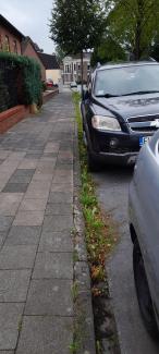 Schiefestrasse in der Gosse lauter Unkraut. Komplett zugewachsen.