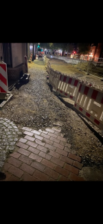 Die aktuell provisorische Oberfläche ist darauf zurückzuführen, dass im Rahmen dieser Maßnahme die Oberfläche erneuert wird und der Bereich dafür temporär aufgebrochen werden musste. Die Arbeiten werden planmäßig fortgesetzt, sobald das Wochenende vorüber ist.