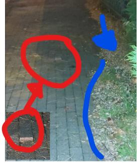 -Bürgersteig versperrt mit Baume-Sträucher und anderes Grün-Blatt (Blau markiert)