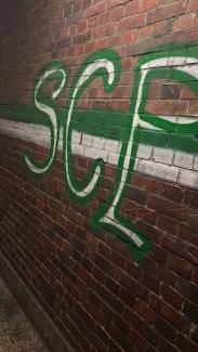 Grässliches Graffiti in der Unterführung zwischen der Gaststätte Latüchte und dem Spielcasino