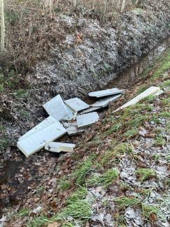 Bauabfall im rechten Graben vom Driland See kommend. Kurz vor der Einfahrt zum Hundefriseur.
