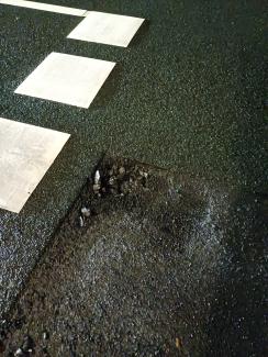 Schlaglöcher auf der Straße wo man sich die Reifen beschädigt.